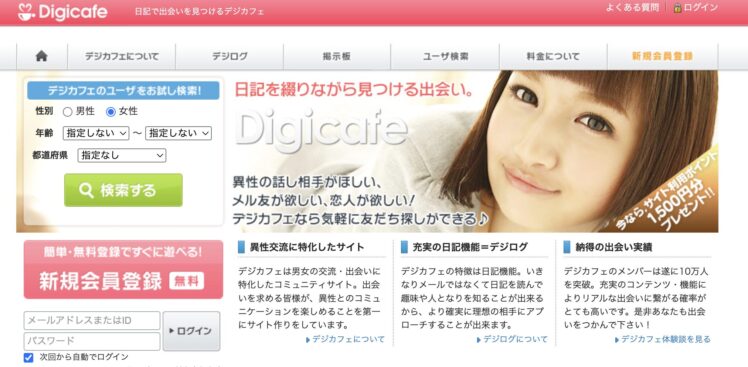 デジカフェは、テキストベースのコミュニケーションを主体とした従量課金制の出会い系サービスです。
