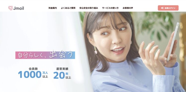 Jメール(ミントC!Jメール)は、20年以上の運営実績を持ち、累計会員数が1,000万人を超える老舗のマッチングプラットフォームです。