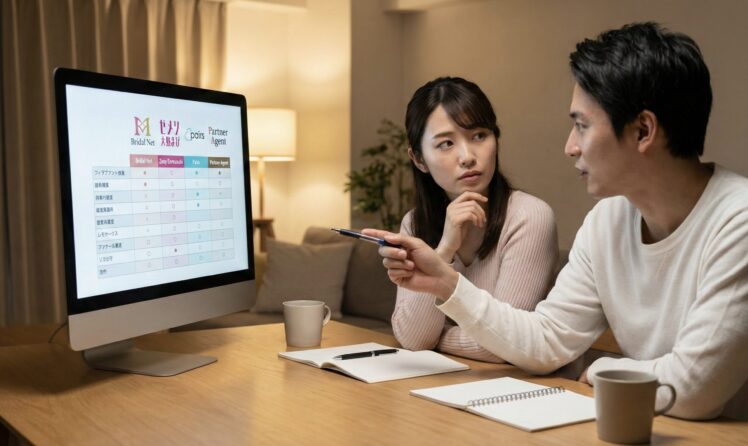 | 大手店舗型 | 初期費用高め 成婚料なしが多い | 全国の店舗で対面での面談やデータマッチング | 店舗での対面の安心感を売りにする大手に対し、Presiaは完全オンラインで利便性を追求しています。 |
